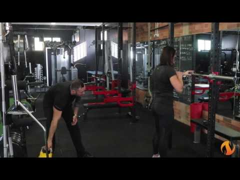 So you have mastered squatting basics with the kettlebell, time to move to the next progression. Once you become competent squatting with a 20kg kettle bell, move to the bar. You still want to use an anterior loaded position. We like to use a safety bar but not all gyms have safety bars so you can try a front squat.